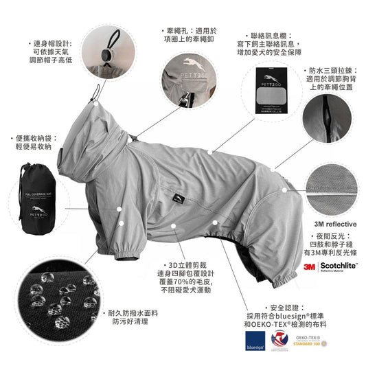 狗狗連身式極輕風衣 -灰色 (台灣出貨)