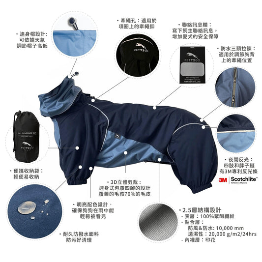 狗狗連身式透氣雨衣 -午夜藍 (台灣出貨)