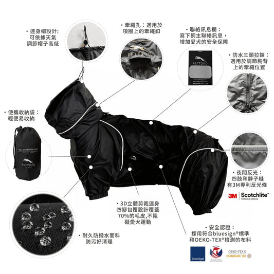 狗狗連身式極輕風衣 -炭黑色 (台灣出貨)