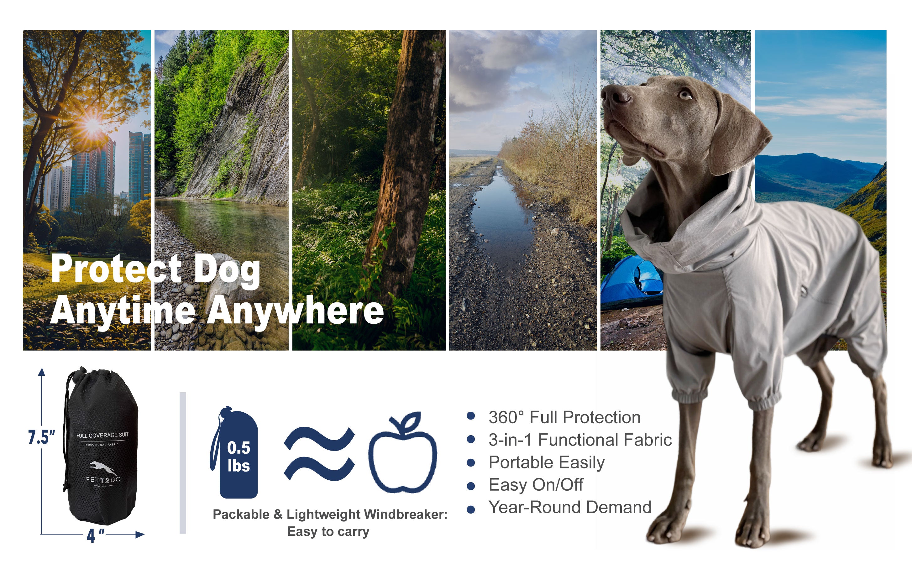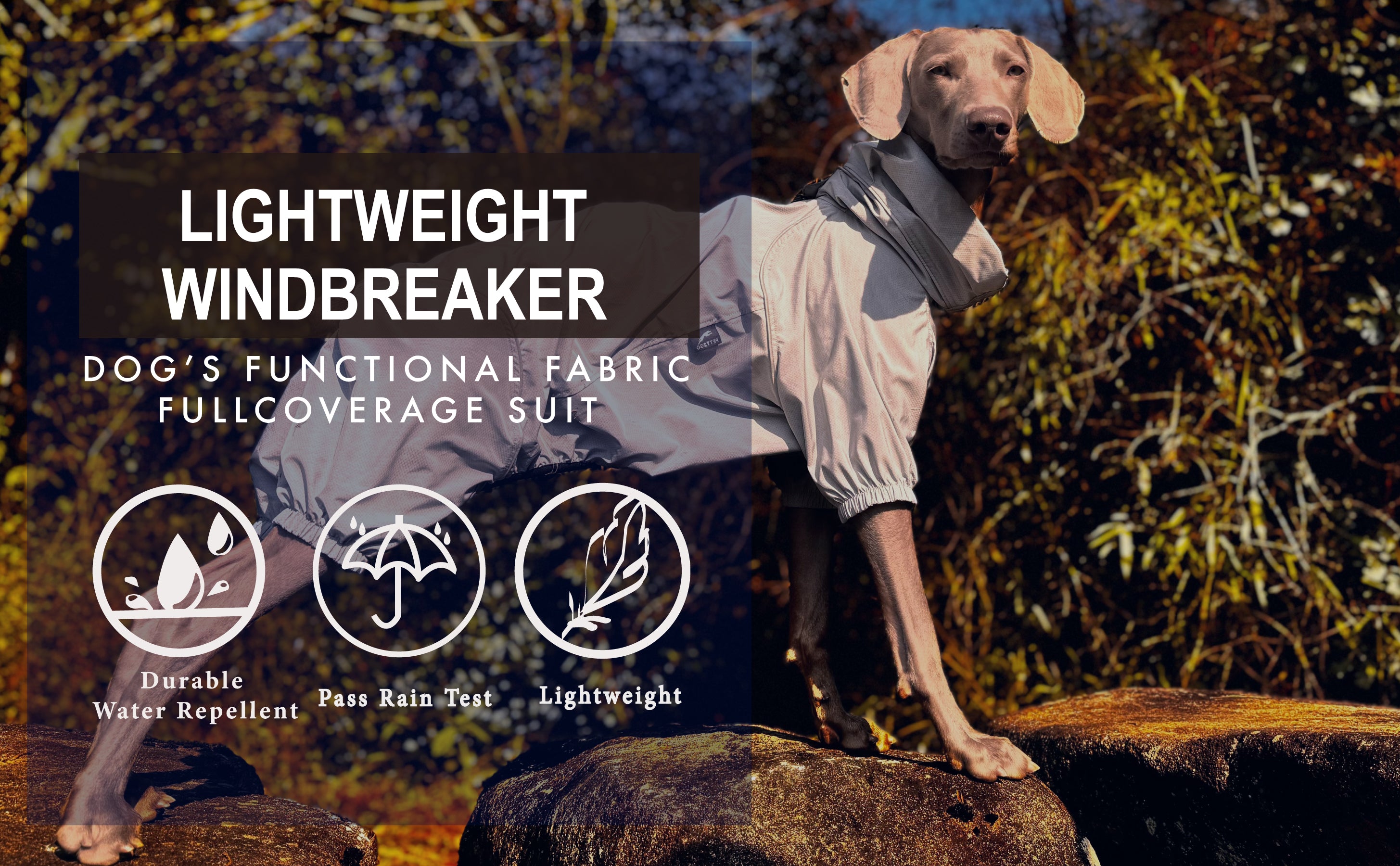 狗狗連身式極輕風衣 -灰色 (台灣出貨)