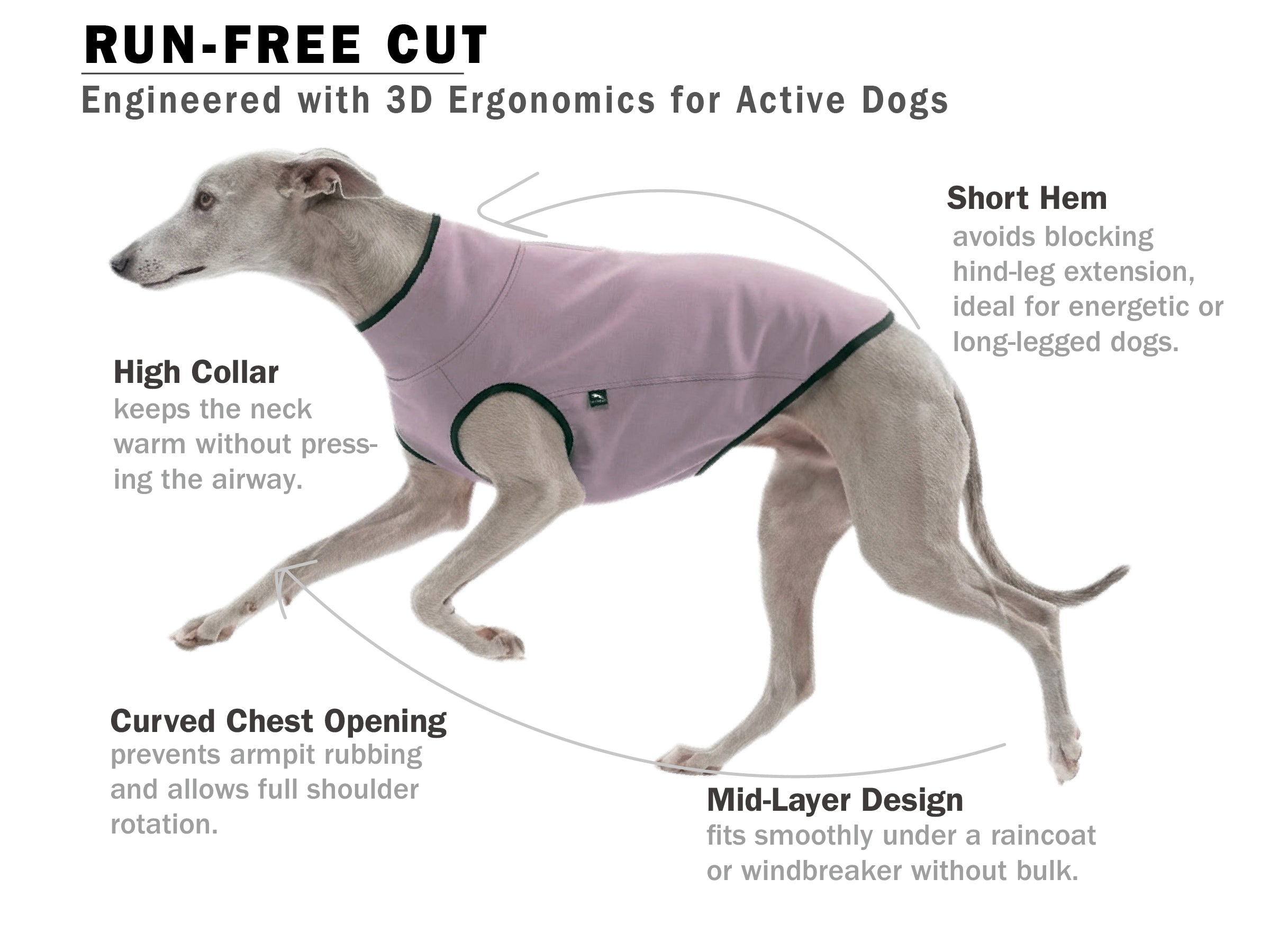 Moves with your dog’s natural stride. Run, jump, stretch freely.