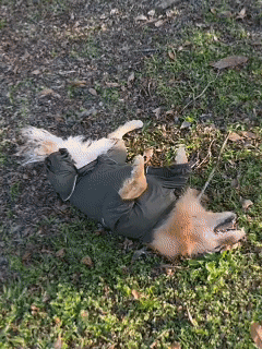 我們今天收到立刻穿起來了!走得快得都要飛起來了!褲管不長不影響走路!回到家後擦擦腳就好了!頭也能裹得住,她還可以跑起來,只能說這對於柯基的雨衣來說真的太不容易了!