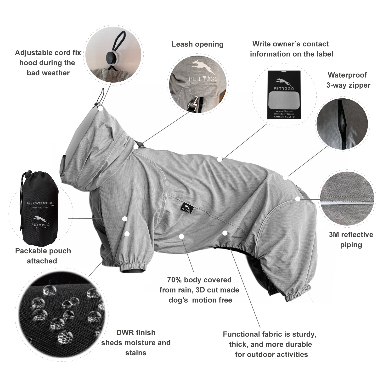 狗狗連身式極輕風衣 -灰色 (台灣出貨)