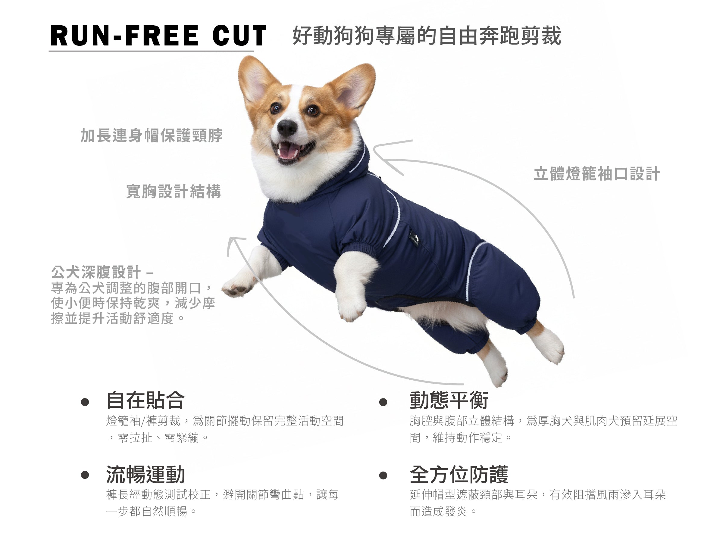 - 面料手感柔軟可四向伸展,讓狗狗在潮濕天氣也能舒適活動。