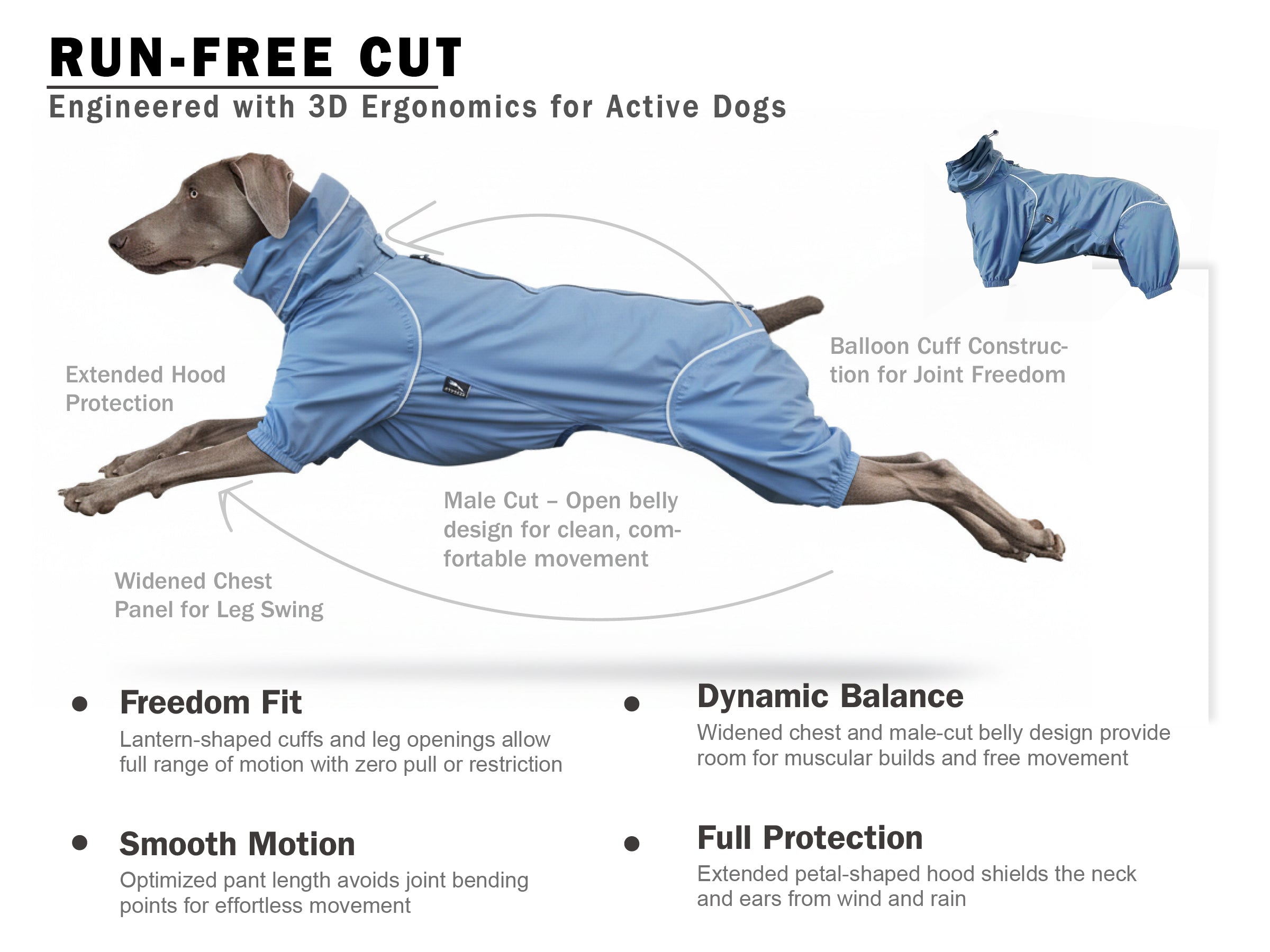 - Allows dogs to move comfortably with lightweight and 4-way stretch fabrics, even on wet days.