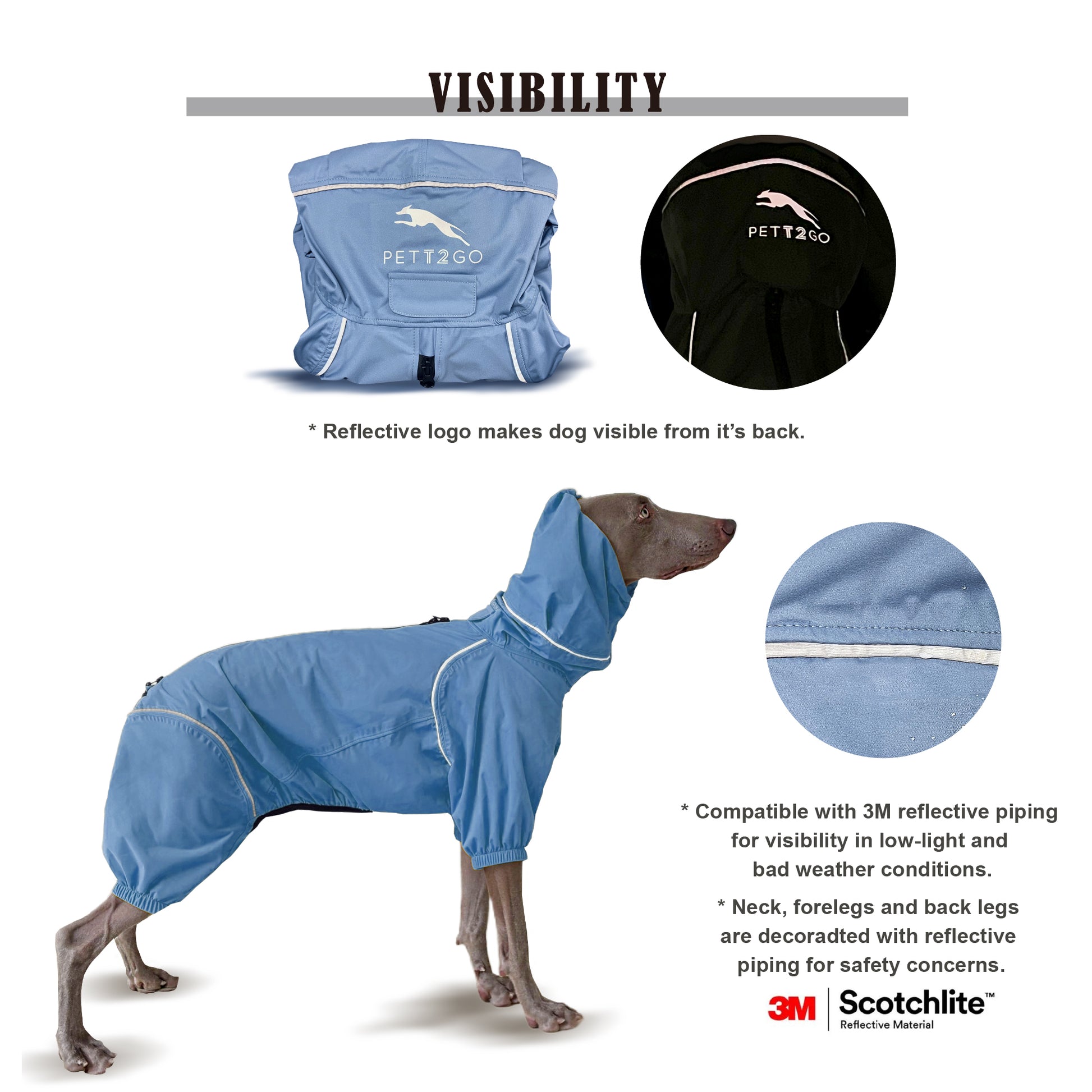 - It blocks wind, sheds water, and breathes with ease, letting excess heat and moisture escape —avoiding dog skin disease. Perfect for wet days in the park, woods, and outdoors.