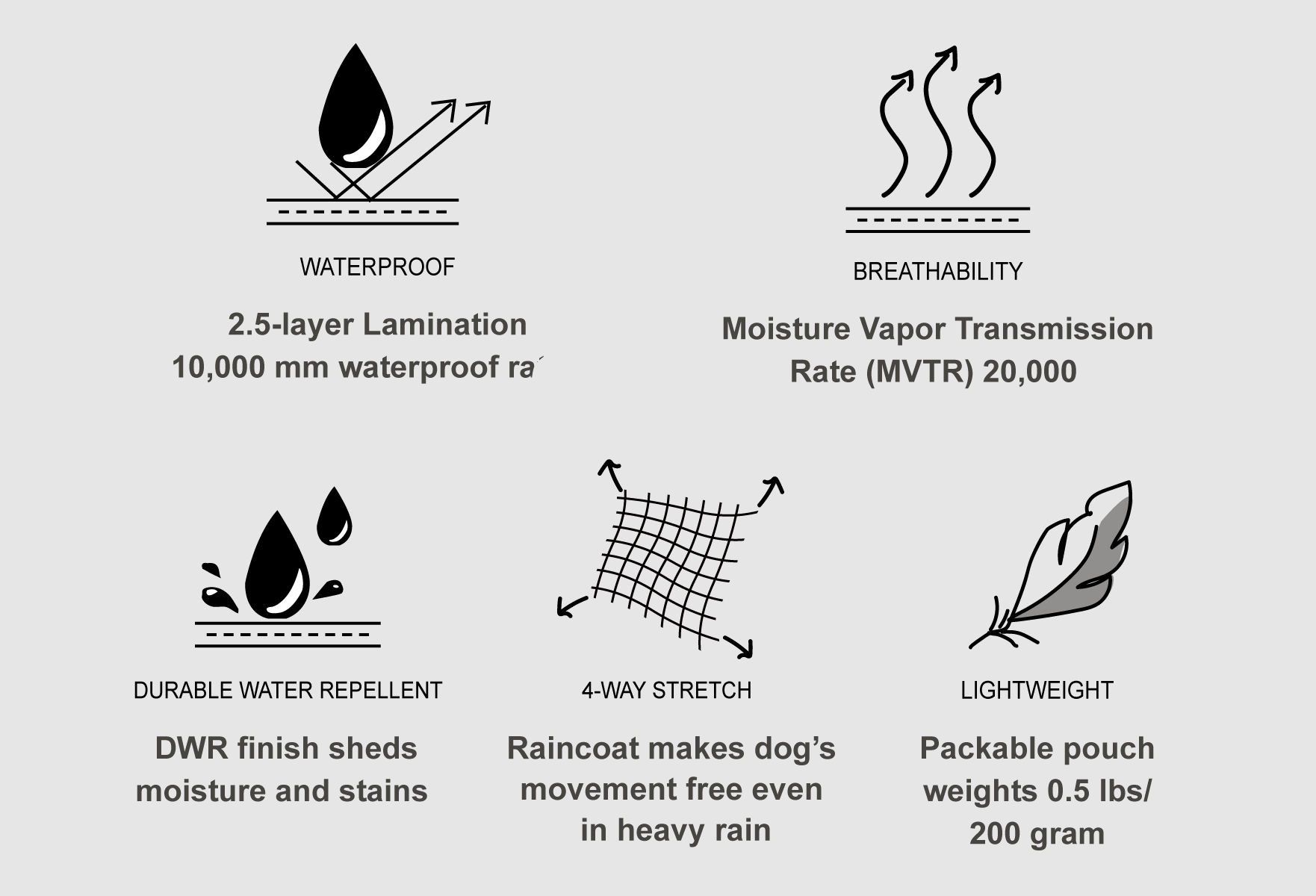 0.5 lb lightweight raincoat with packable pouch for easy storage. ideal for year-round protection while hiking and camping with dogs.