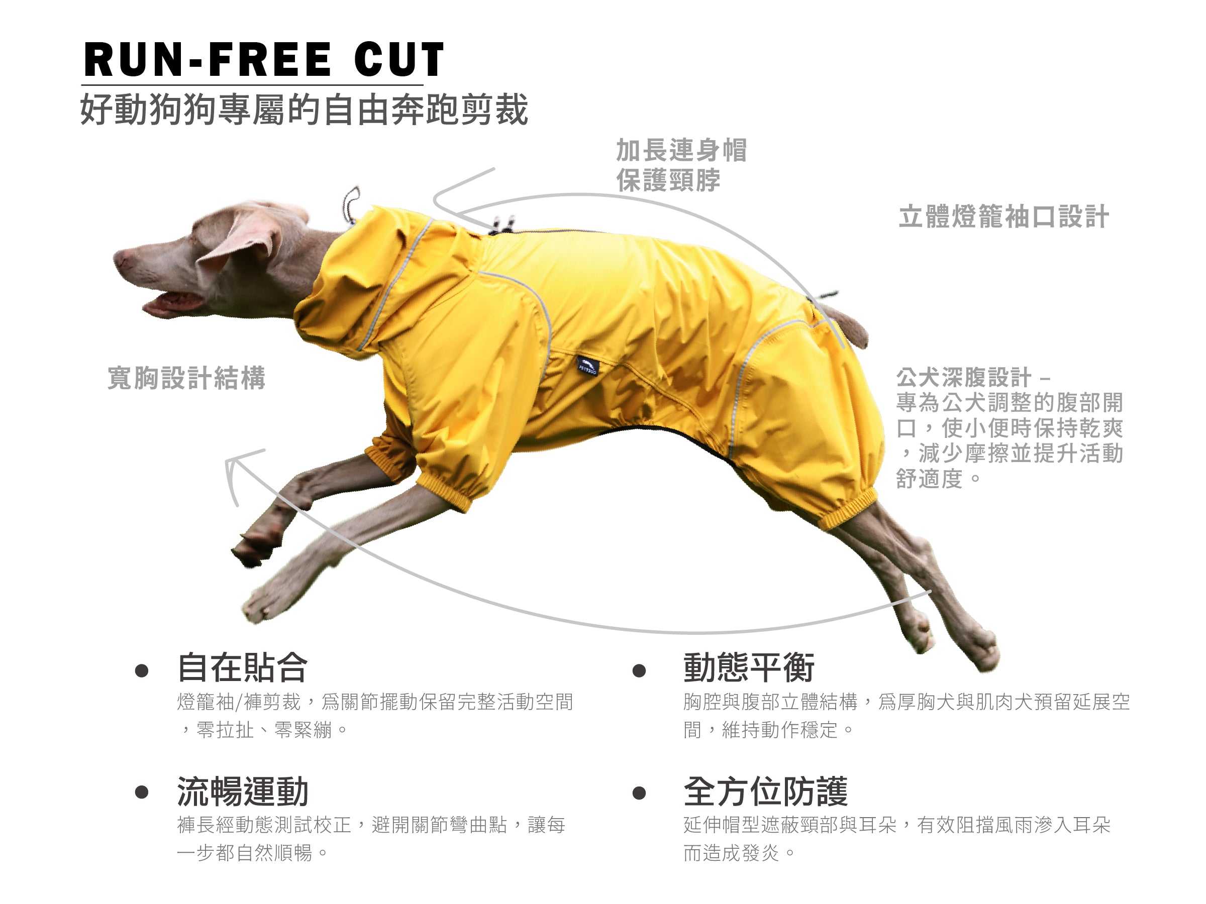 狗狗連身式透氣雨衣 -晨曦黃(台灣限定款)