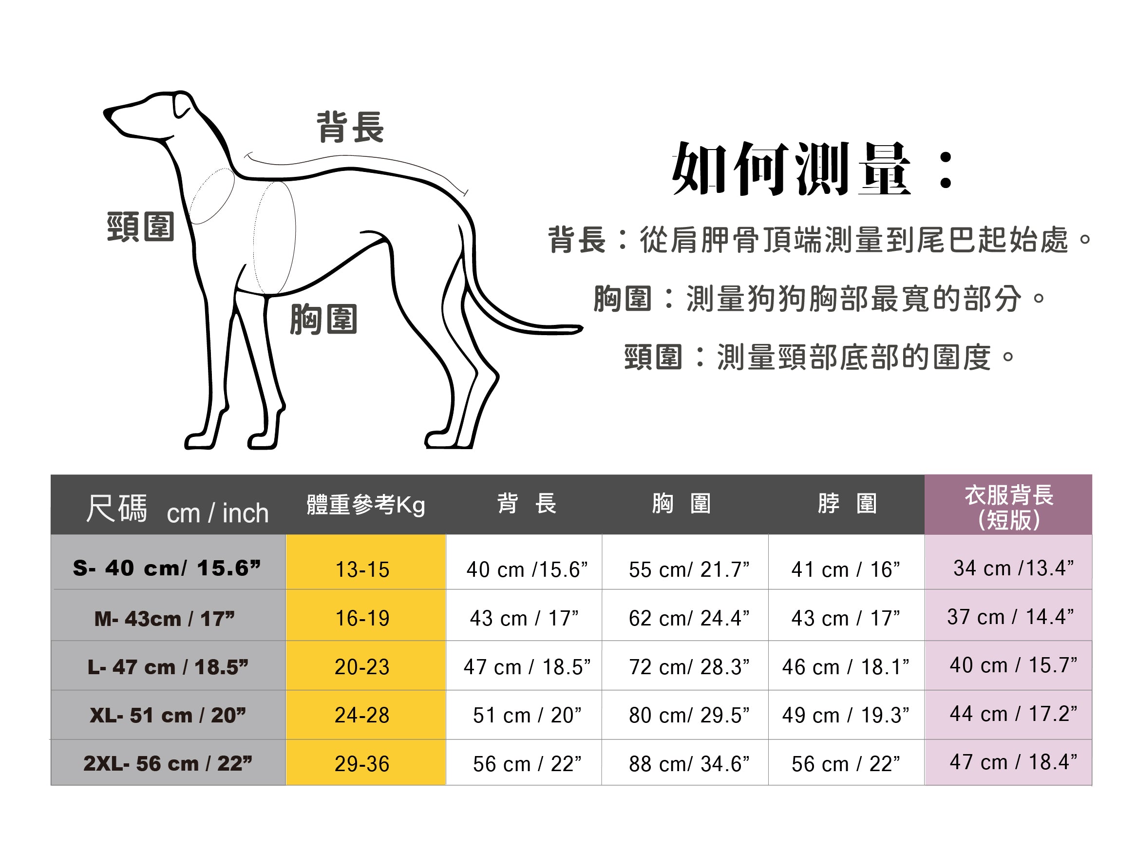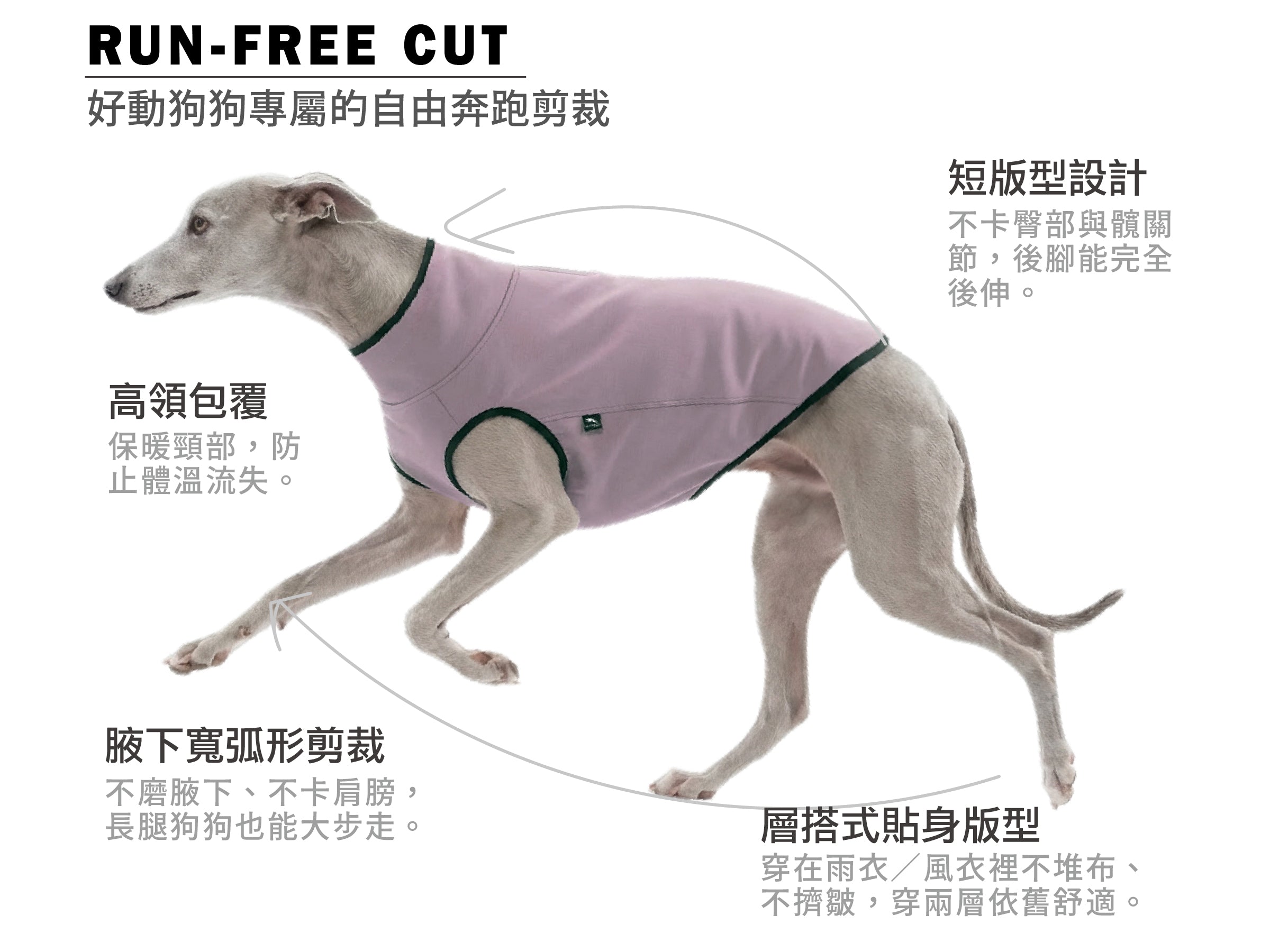 - Run-Free Cut 自由奔跑剪裁:符合狗狗運動的立體版型。