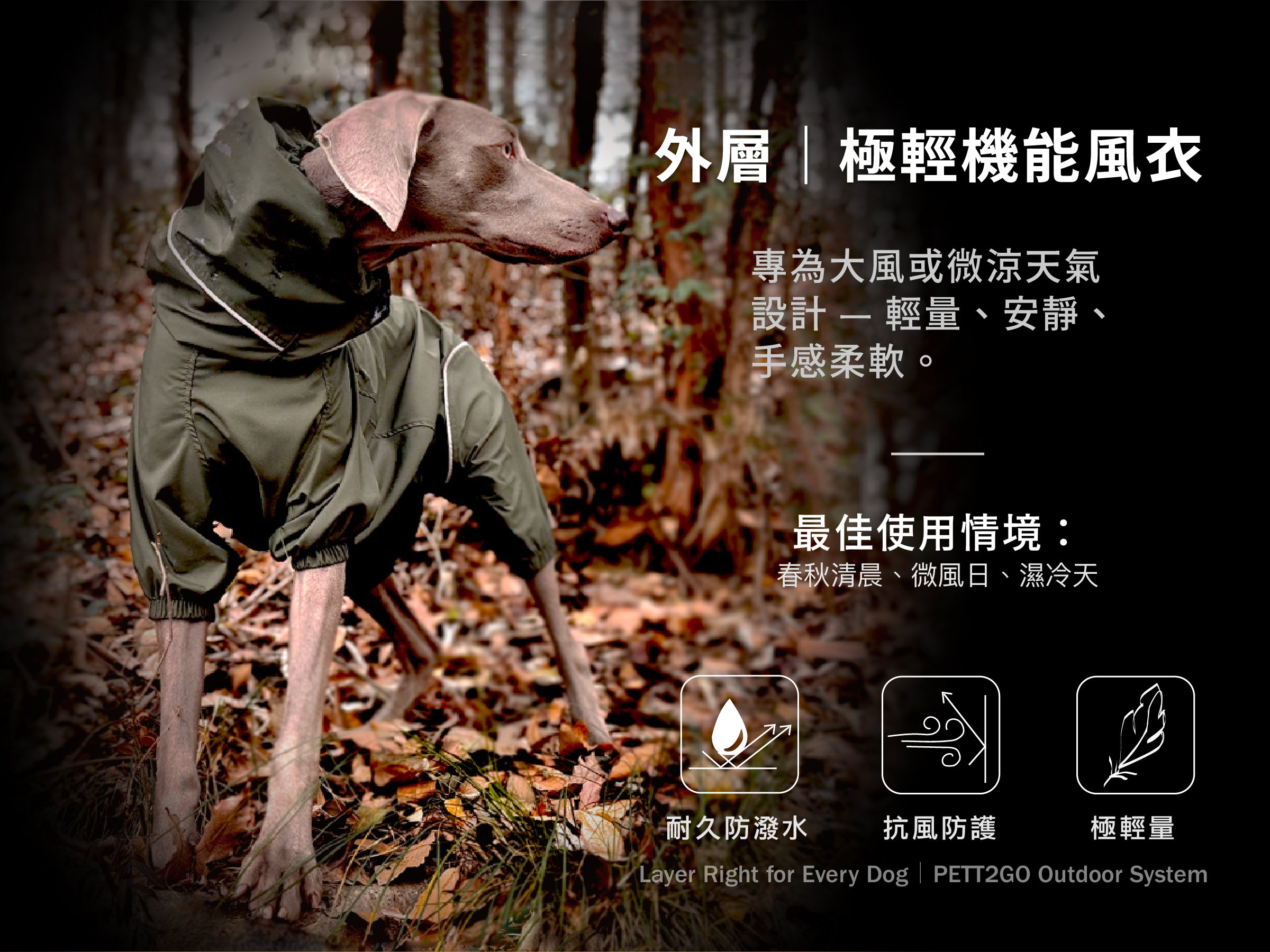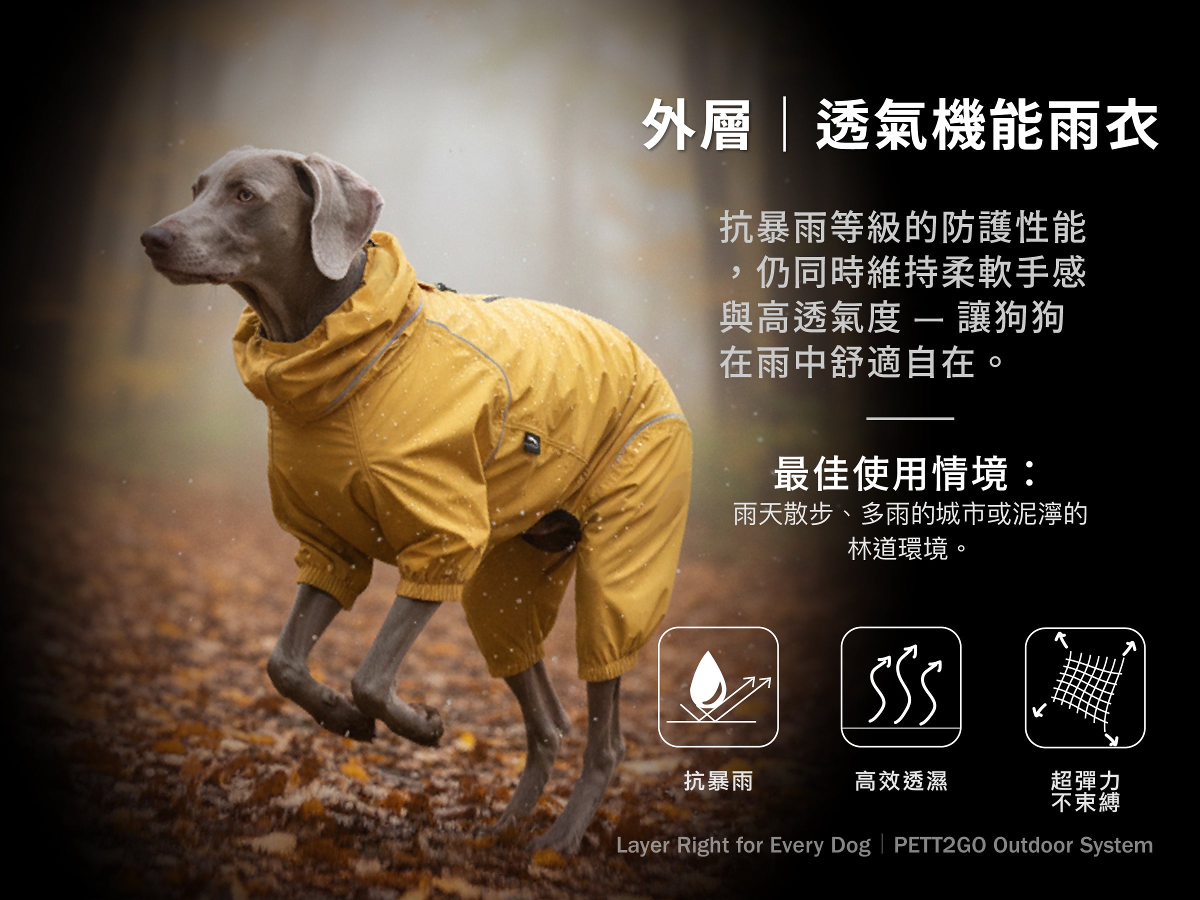 可搭配PETT2GO 雨衣內作為中層保暖 或於 涼爽乾燥的天氣單穿 都非常適合。