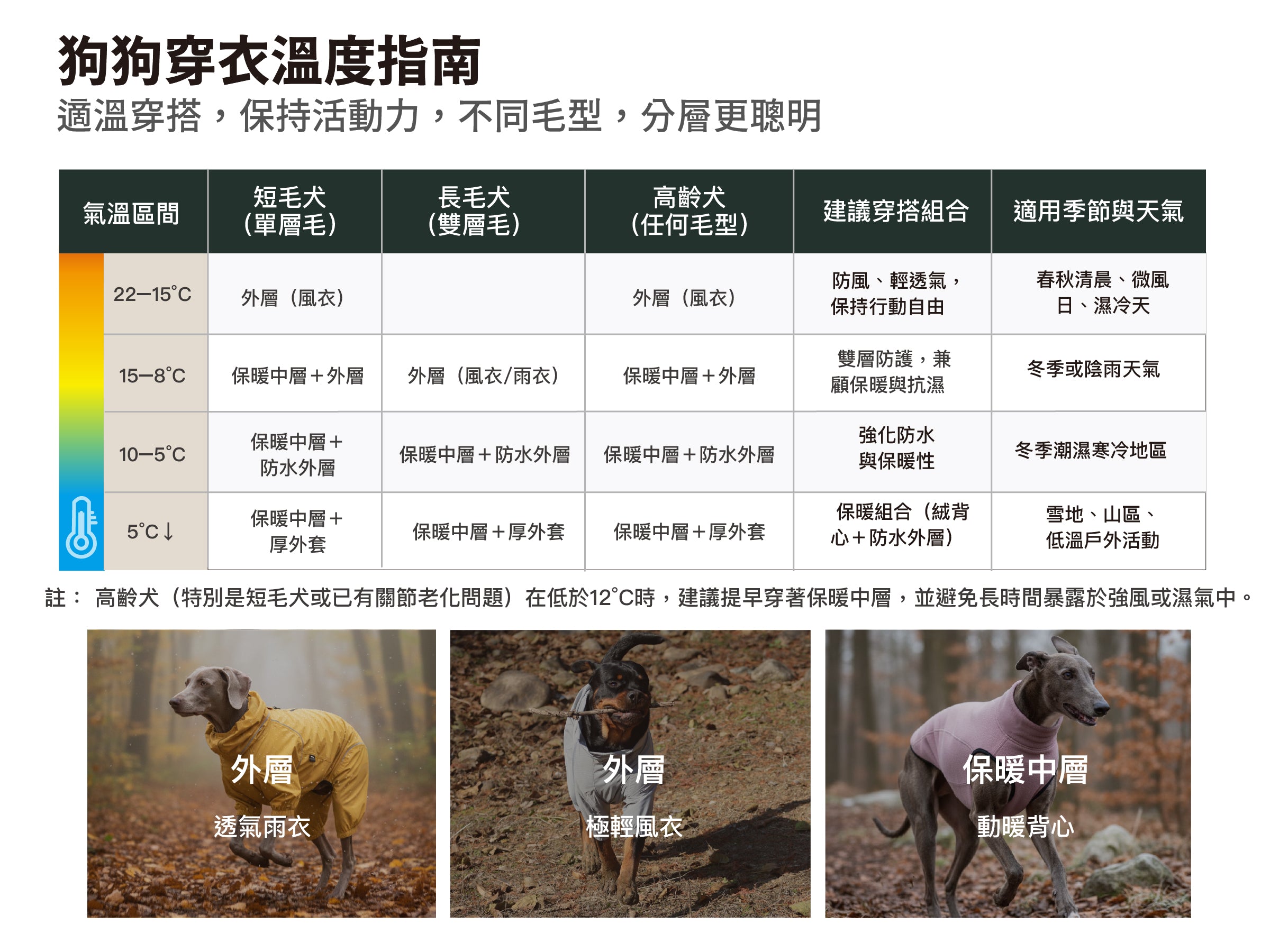 讓狗狗在低溫天氣中依然能保持溫暖、自在、不受束縛。