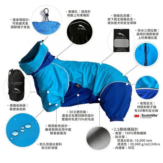 狗狗連身式透氣雨衣 -天空藍 (台灣出貨)