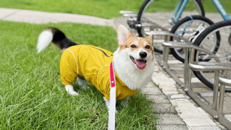 柯基連身式透氣雨衣 -晨曦黃 (台灣出貨)