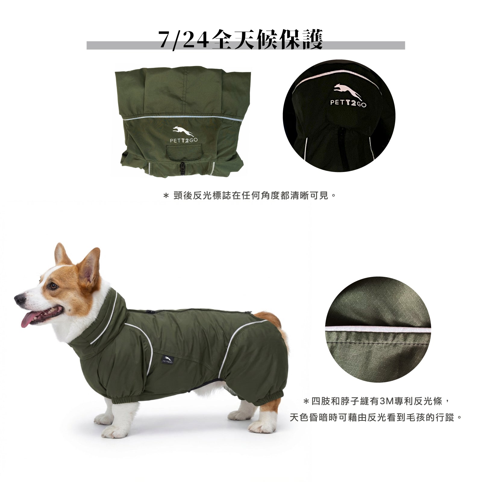 狗狗連身式極輕風衣 -深綠色 (台灣出貨)